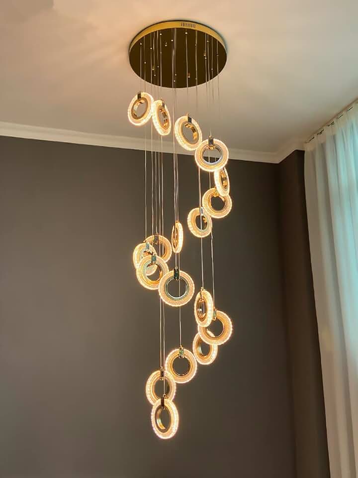 Spiral Stairs Chandelier LED Raindrop Home Decor Long Hanging Fixture (8 Rings: D40 H150CM)