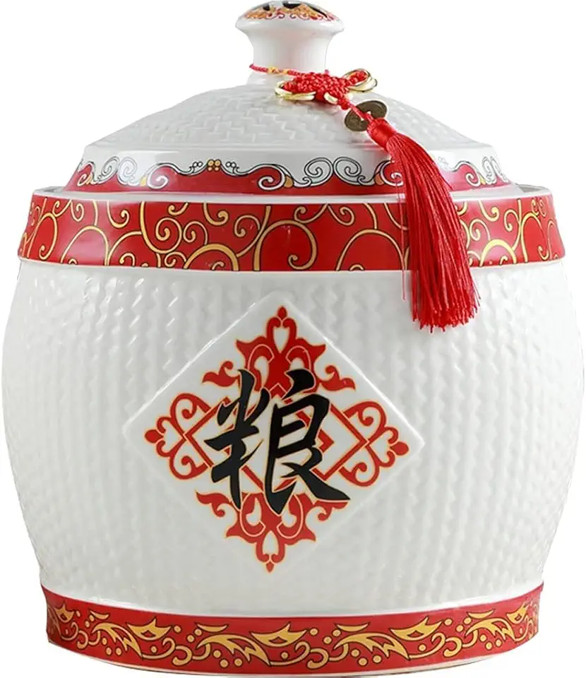 Food Storage Containers Rice Storage Container Ceramic Rice Jar Household With Cover,10kg Sealed Rice Tank Rice Storage Box Rice Bucket,Suitable For Grains, Flour, Sugar, Coffee, Rice (White