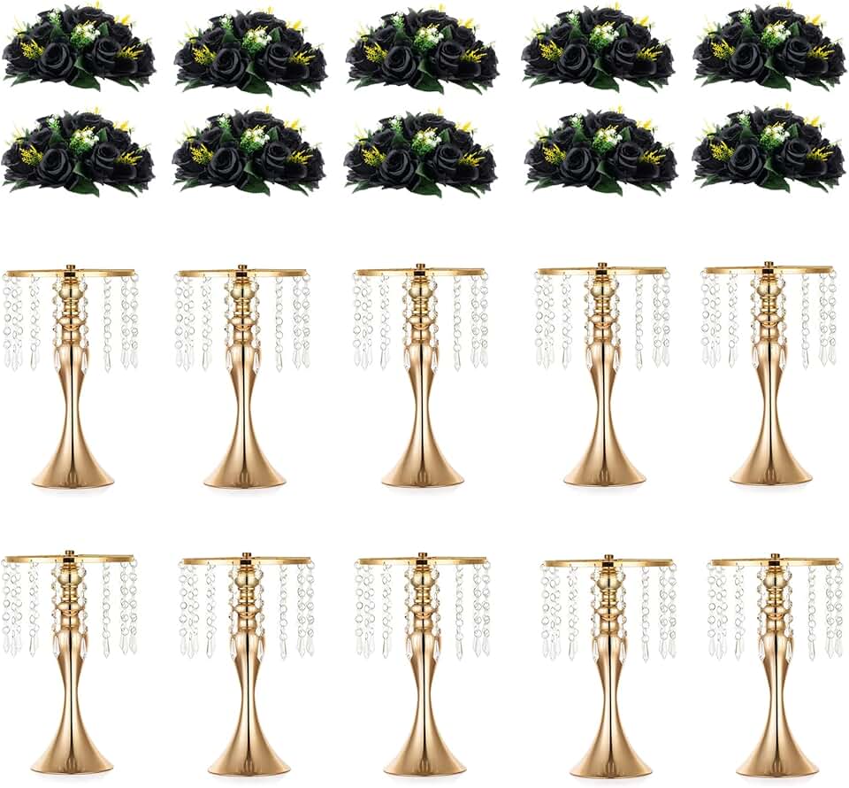 Inweder Wedding Flower Balls for Centerpieces - Artificial Flower Ball Arrangement Bouquet, Fake Flowers Rose Balls for Weddings, Birthday Party, Valentine's Day, Home Decor, Black, 10 Pcs