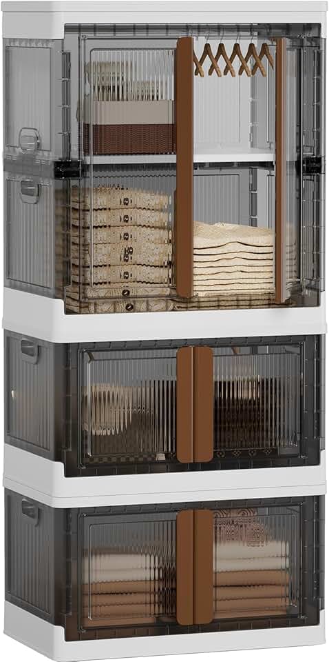 HAIXIN Closet Organizers and Storage, 77.6 Gal Stackable Bins, Wardrobe Organizer, Collapsible Clothing Storage with Closet Rod, Divider and Clothes Hangers (1 Pack 39.6 Gal and 2 Pack 19 Gal)