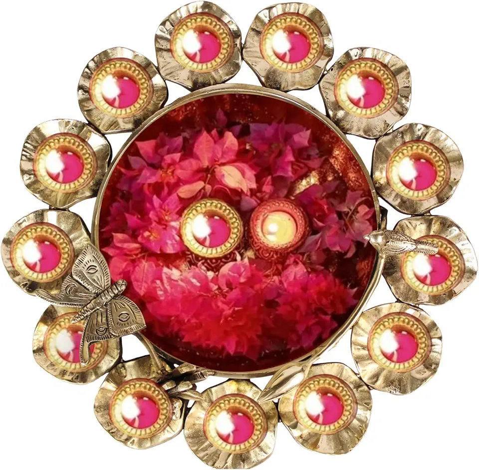 Big Brass Ethnic Carved Flower Bird Butterfly Urli Bowl Handwork Tea Light Candles Showpiece for Floating Flowers and Candles Home and Office Decoration 15 Inch