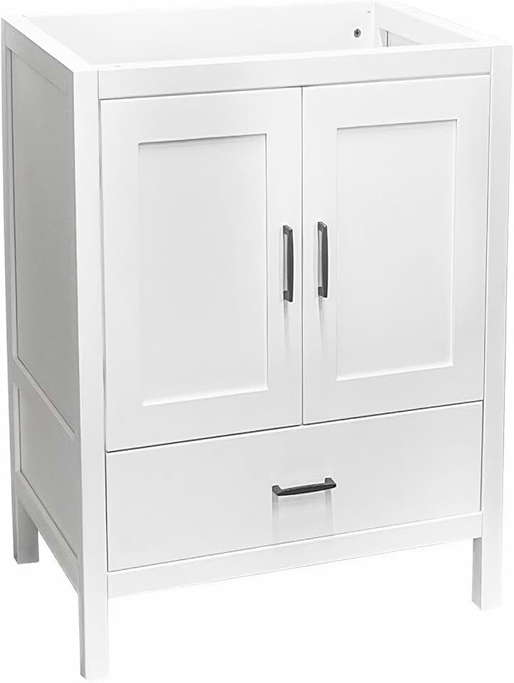 White 24" Bath Vanity with Bottom Drawer Sink Cabinet Without Top (White Catalina, 24" Wx21 Dx34.5 H)