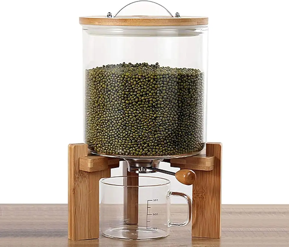 Rice Dispenser Cereal Containers, Glass Food Storage Container for Grain, Legumes, Rice, Moisture and Dustproof, Sealed Rice Bucket with Measuring Cup, Waterproof Food Dispenser(Size:5L)