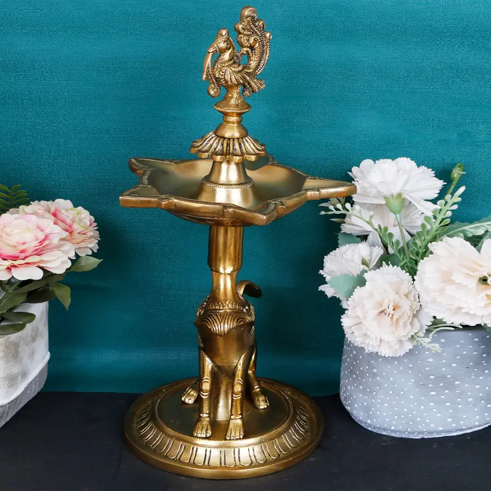 Peacock Diya Table Oil Lamp Brass Traditional Handmade Designer Lamp for Temples Puja Festival Gifts & Home Décor Height: 12 Inch