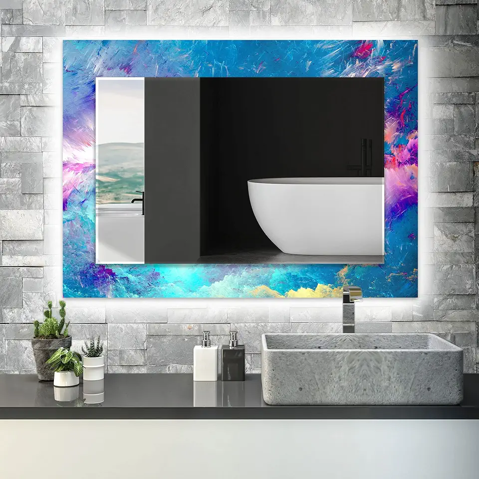 Led Mirror with Tempered Glass 59 x 23.6''(Horizontal) Led Bathroom Mirror Wall Decor for Bedroom Makeup Mirror Entryway Decor-Illuminated Mirror Led Lighted Vanity Mirror 76