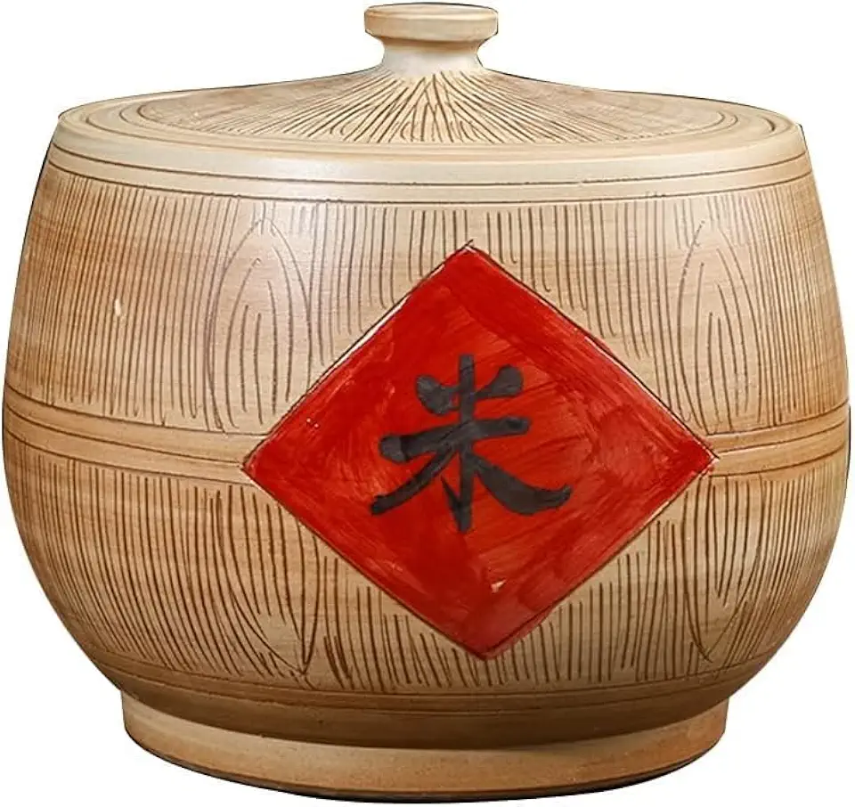 Food Storage Containe Rice Storage Container Jar Household Fully Sealed Ceramic Rice Cylinder 5kg/10kg/15kg Capacity