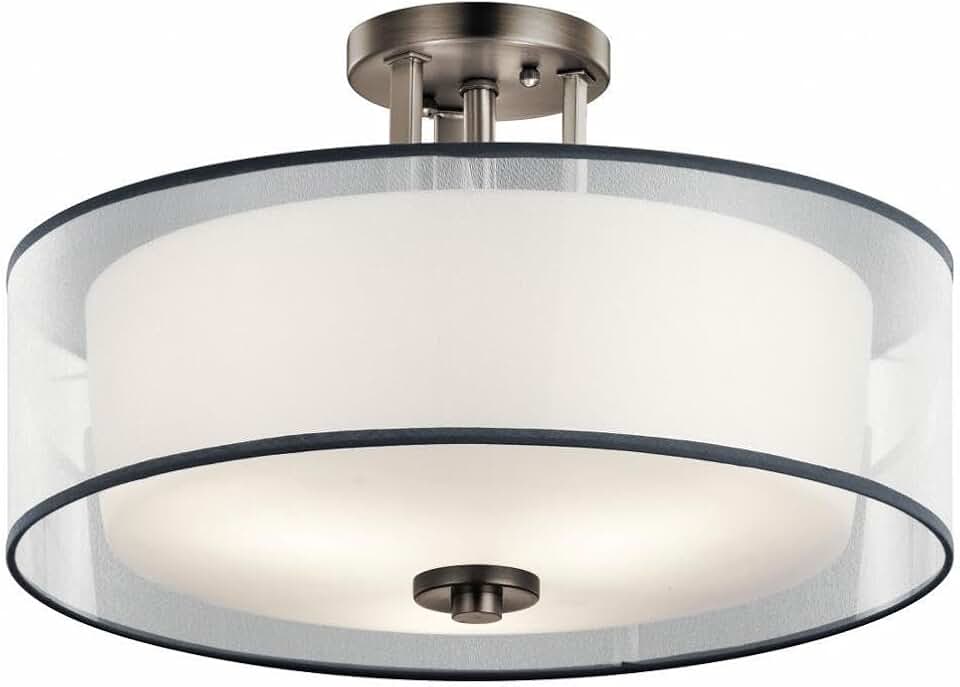 Kichler Tallie 18" 3 Light Semi Flush with Satin Etched White Inner Diffuser and White Translucent Organza Outer Shade in Antique Pewter