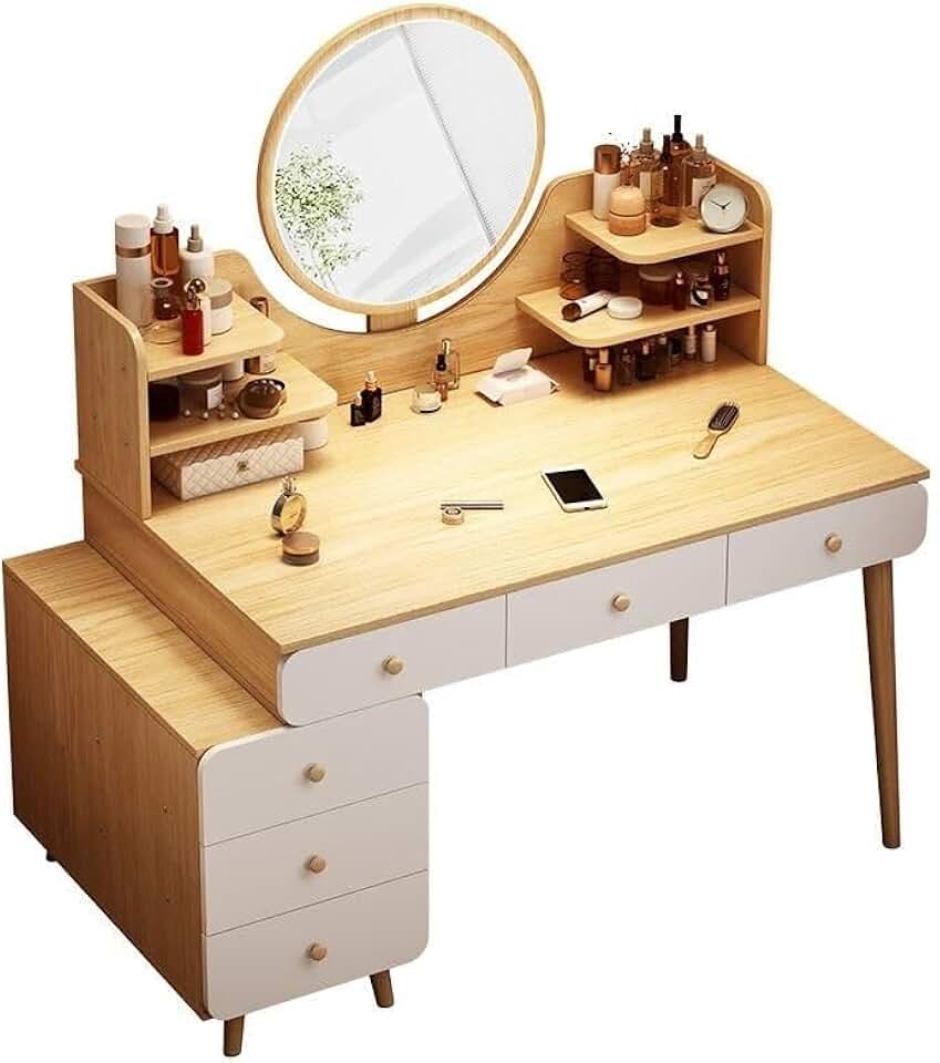 Elegant Modern Dressing Table with Mirror & Stool - Minimalist Makeup Organizer & Study Desk