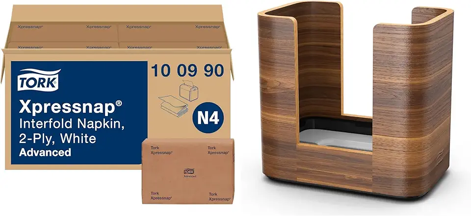 Tork Xpressnap White Dispenser Napkin, N4, 12 x 500 Sheets + Xpressnap Tabletop Napkin Dispenser, Walnut