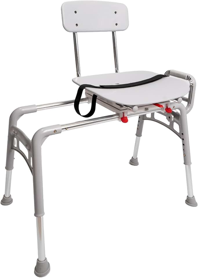 Eagle Health Supplies Swivel Sliding Shower Chair & Tub Transfer Bench MOD w/Interchangeable Arm Rest, Height Adjustable, 350 LBs Weight Capacity, for Safety Shower, for Elderly & Disabled (80662)