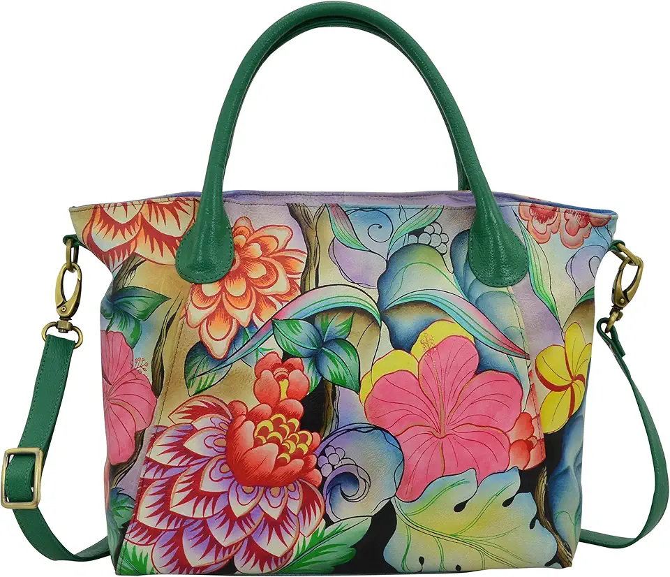 Anna by Anuschka Women's Genuine Leather Large Slouch Tote Bag | Hand Painted Original Artwork | Whimsical Garden