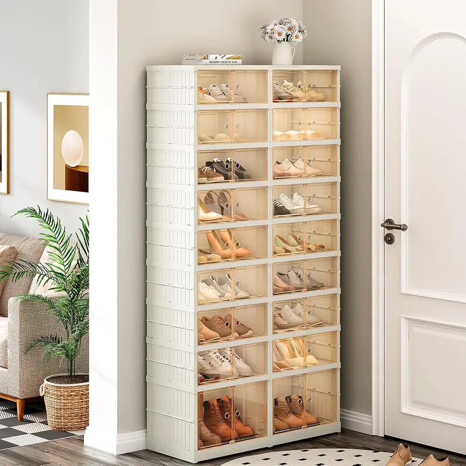 Redlife 9 Tier Foldable Shoe Rack Organizer for Closet, 18-36Pairs Plastic Shoe Shelf Collapsible Shoes Storage Box, Clear Shoe Boxes with Door, Shoe Cabinet with Lids, Large Tall Shoe Cabinet