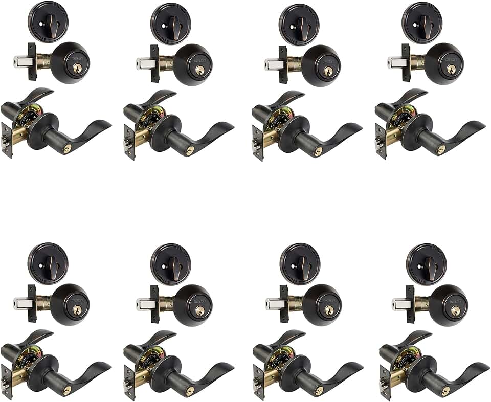 Dynasty Hardware CP-HER-12P, Heritage Front Door Entry Lever Lockset and Single Cylinder Deadbolt Combination Set, Aged Oil Rubbed (8 Pack) Keyed Alike