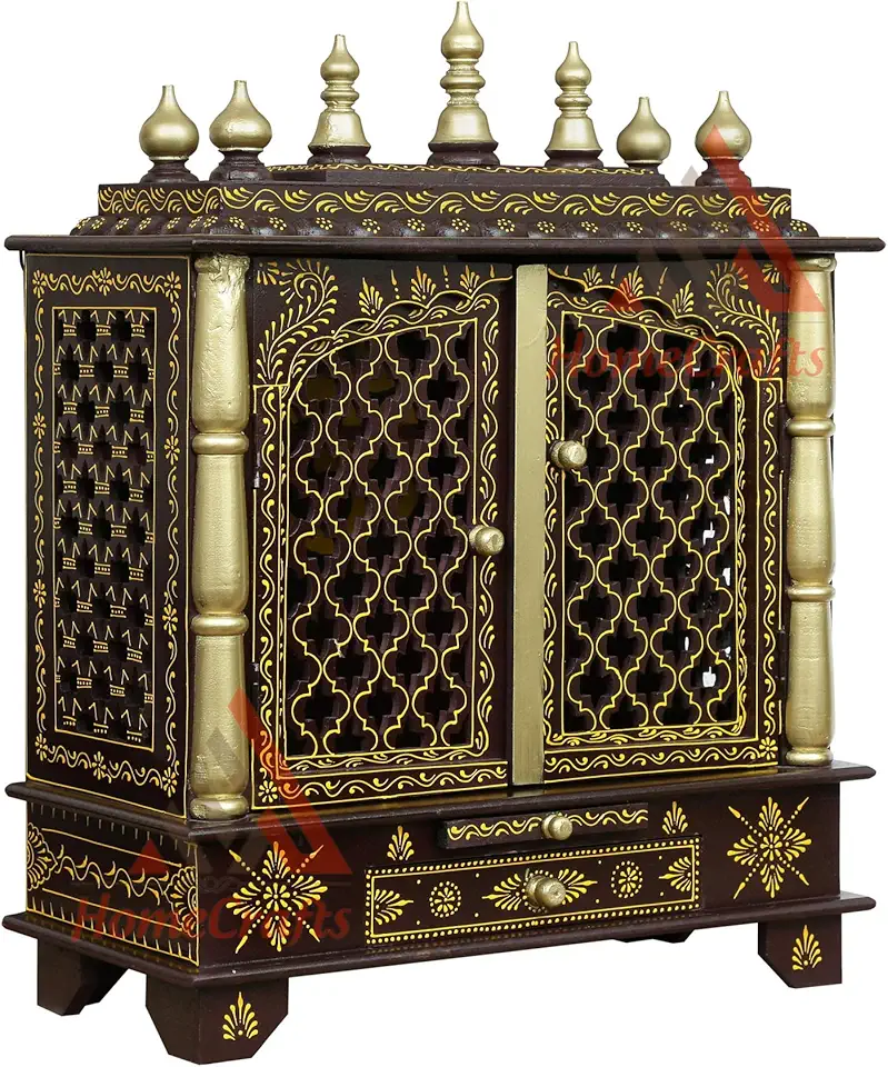 Homecrafts Handpainted Wooden Home Temple/ Home mandir/ god stand for home/ pooja stand/ home mandap/ mandapam/ pooja mandir with Doors and Big Size (Color-PilaEmboss)