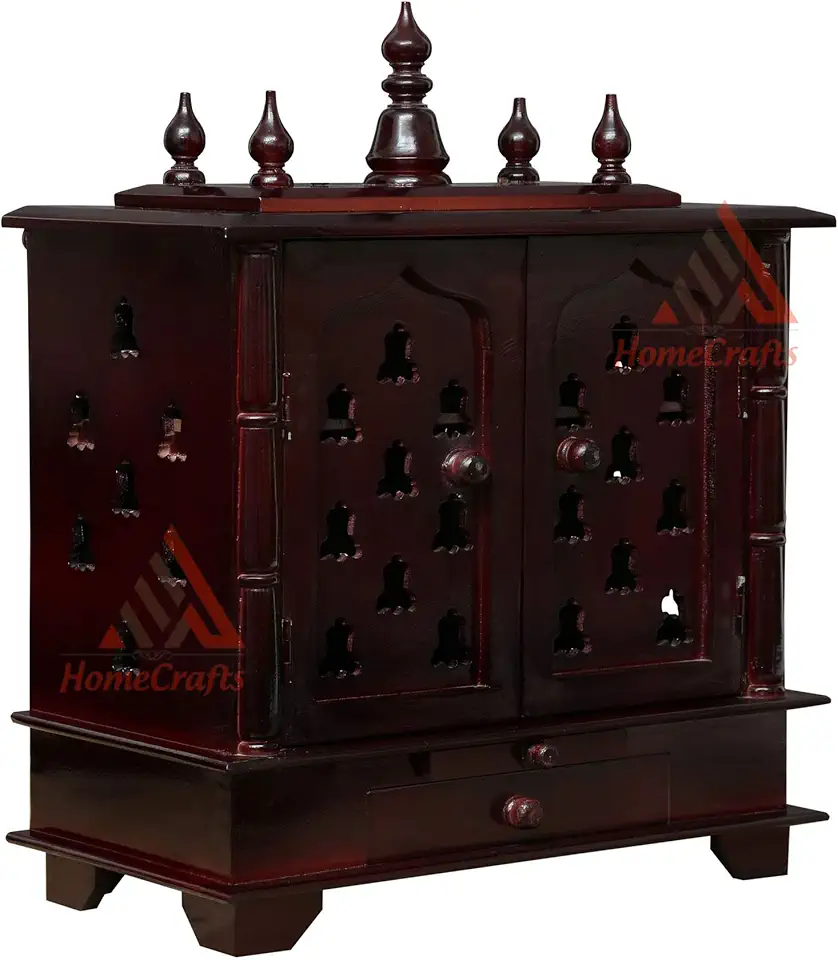Homecrafts Handpainted Wooden Home Temple/ Mandir/God stand for home with Doors and Medium Size (Color-DRM4) (in Side Partition Shelf) Medium Size- 20x11x24 Inch