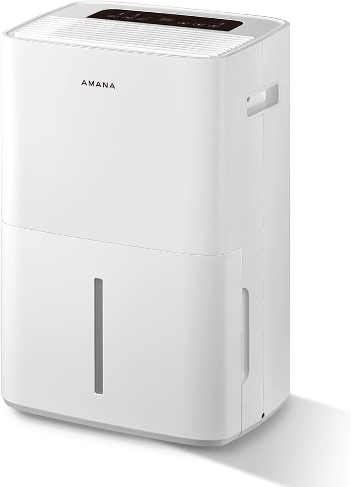 Amana 50-Pint Portable Dehumidifier for Basement, Bedroom, Attic, Garage, 115V, with 3 Speeds, Auto-Shutoff, and 24H Timer, Energy Star, White