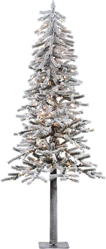 Vickerman 7' x 42" Flocked Alpine Artificial Christmas Tree, Unlit - Snow Covered Faux Tree - Seasonal Indoor Home Decor - Real Wood Trunk