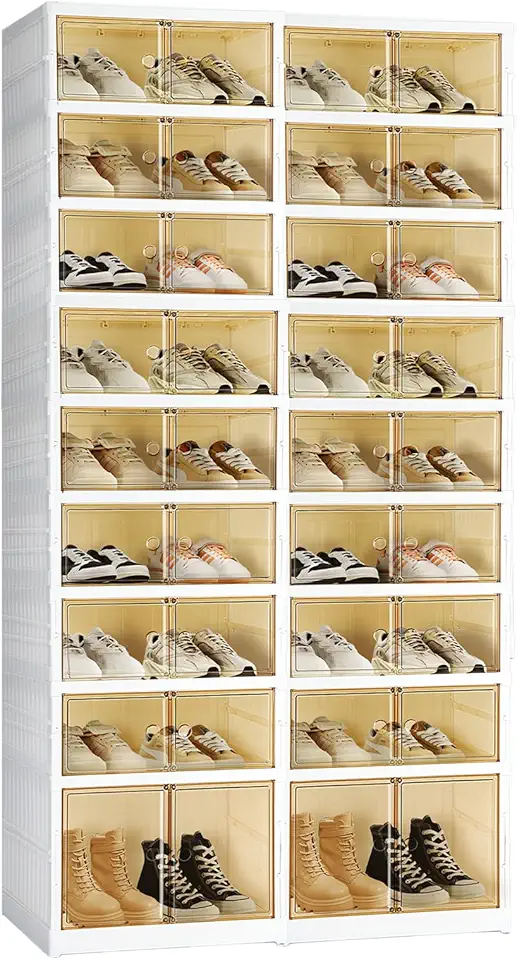 YORKING 9 Tier Foldable Shoe Rack Organizer, 36 Pairs Shoe Box for Entryway, Free Standing Shoe Shelf Cabinet with Lid, No Assembly & Easy to Install, Durable & Stable