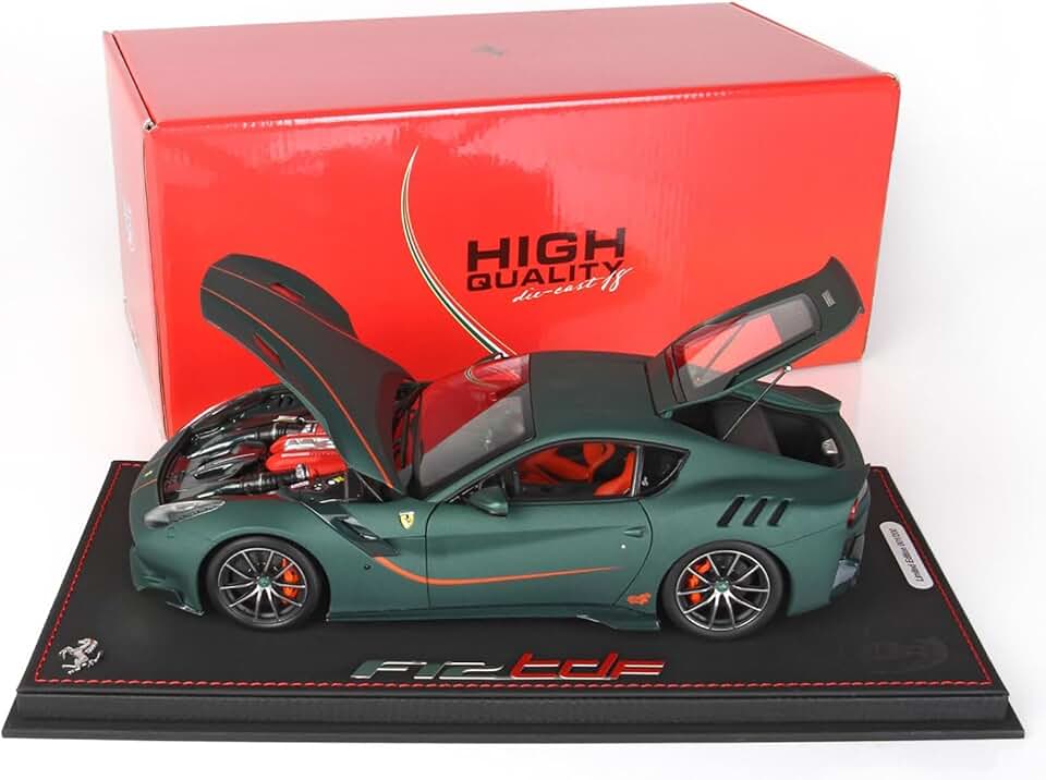 F12 TDF Matt Green with Orange Stripes and Orange/Black Interior with Display CASE Limited Edition to 200 Pieces Worldwide 1/18 Model Car by BBR BBR182105ST