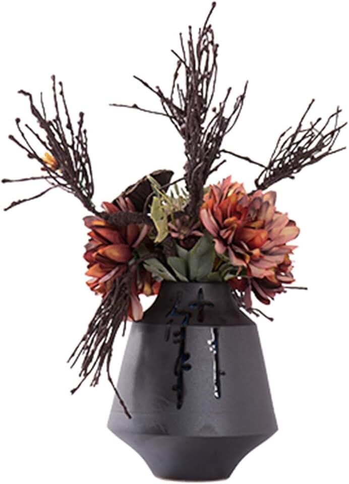 INDYAH Artificial Flowers Dry Flower Floral Arrangement in Vase, Silk Fake Mix Flowers Artificial for Indoor Outdoor Whome Office Decoration Festivenishing/Small
