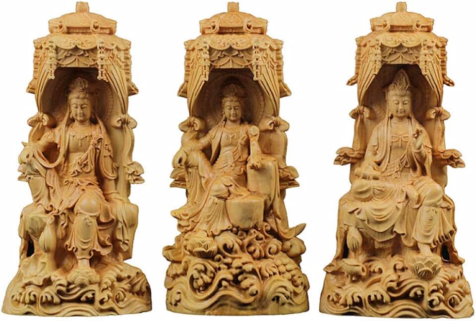 Statue Mural Sculpture Sculptures Statues Ornaments Figurine Collectible Figurines Delicate Western Three Buddhas Round Sculptures Wood Statues Well Buda Folk Statue Hand Sculpture Miniature Tree H