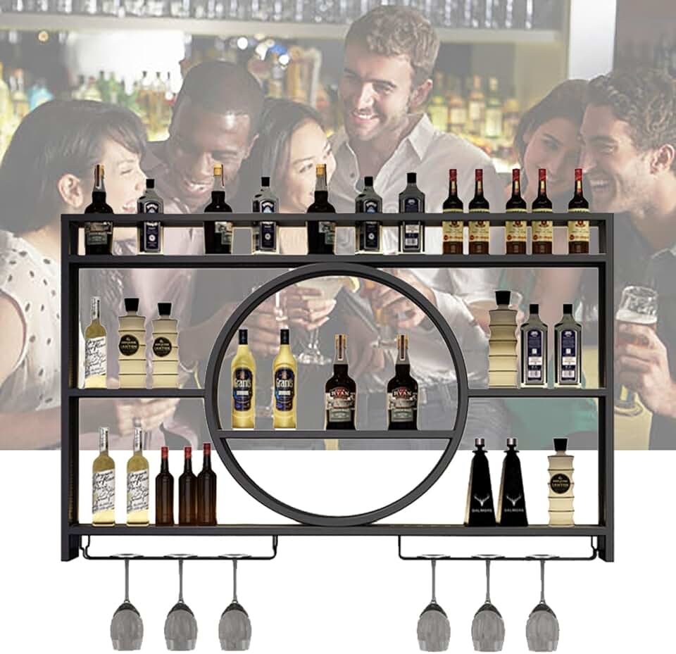Wine Rack Wall Mounted,Wine Racks Free Standing,Hanging Floating Bar Liquor Shelves with Glass Holder Storage Under, Industrial Rustic Pipe Farmhouse Kitchen Decor Black for Kitche