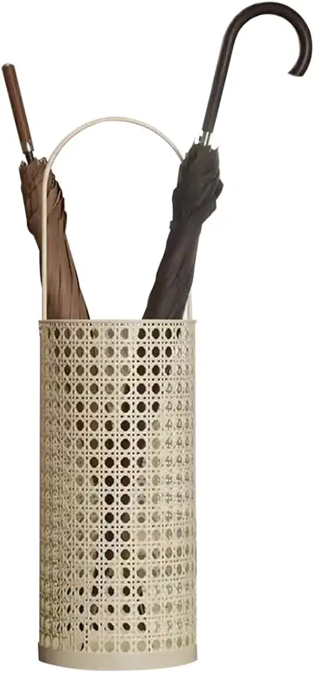Umbrella Stand Umbrella Holder Stand Japanese Style Hollow Iron Umbrella Rack, Entrance Imitation Rattan Weaving Umbrella Bin with Handle, Gift/Decoration