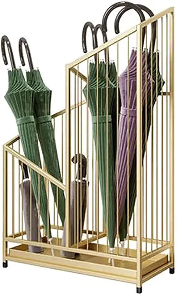 Hollow Metal Umbrella Stand, Detachable Drip Tray Umbrella Stand, Home Office Entrance Umbrella Storage Rack,Gold,25 * 20 * 62Cm