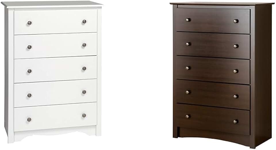 Prepac Monterey 5-Drawer Chest for Bedroom, 16" D x 31.5" W x 45.25" H, White & Fremont Superior 5-Drawer Chest for Bedroom - Spacious and Stylish Chest of Drawers
