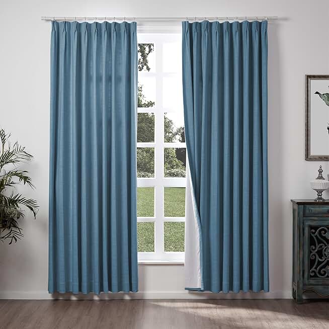 84" W x 84" L Tallis Collection Polyester Linen Drape with Blackout Lining Pinch Pleat Curtain for Sliding Door Patio Door Living Room Bedroom, (1 Panel) Aegean Blue