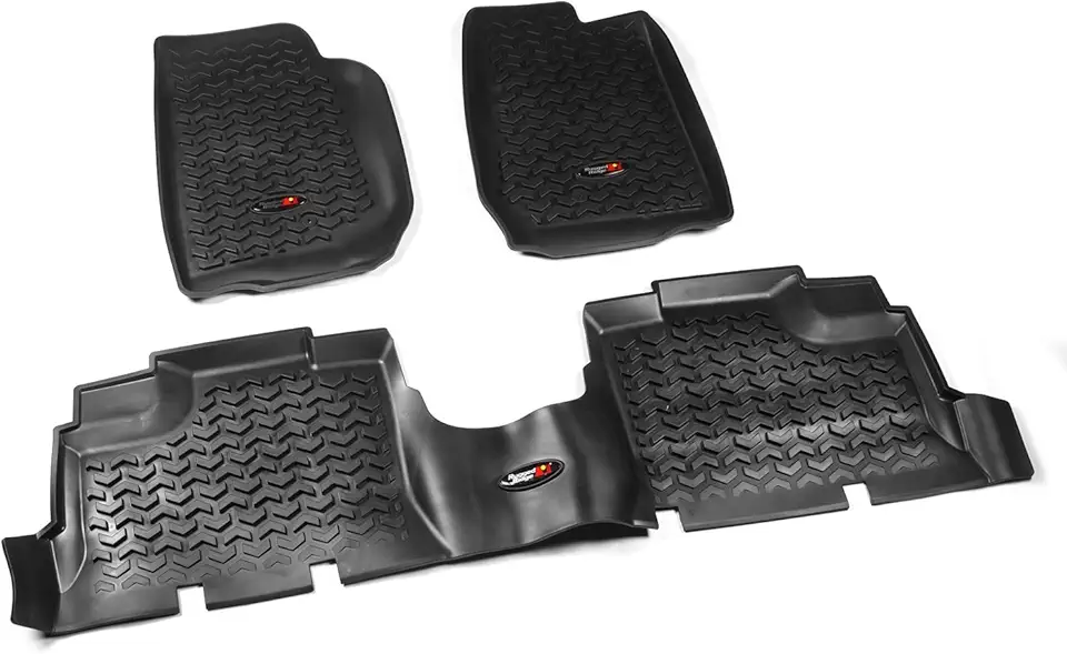 Rugged Ridge Floor Liner Set for Jeep Wrangler JKU | All-Terrain, Front & Rear, 3-Piece Set, Black | 12987.01 | Fits 2007-2016 Jeep Wrangler JKU 4-Door