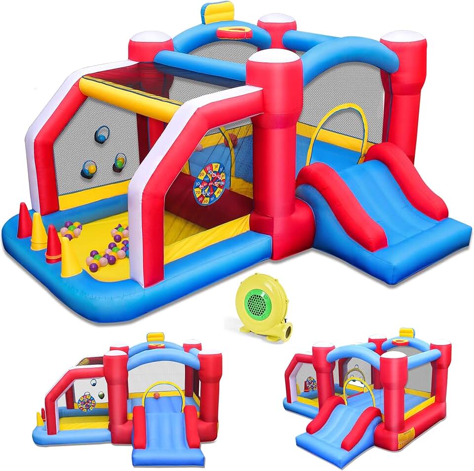 RETRO JUMP Inflatable Bounce House,6 in 1 Bouncy Castle for Children with Large Bouncy Area,Kids Bouncy Castle with Slide-Carry Bag,Repair Patch,Stakes,Eletric Air Pump Included