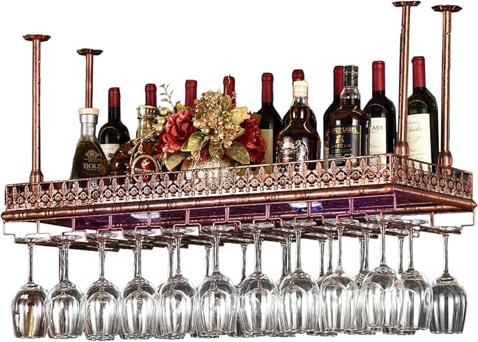 Hanging Wine Rack - Metal Ceiling Wine Glass Rack, Hanging Wine Bottle Holder Glass Shelf, Display Wine Storage Holder for Bar Cafe Kitchen