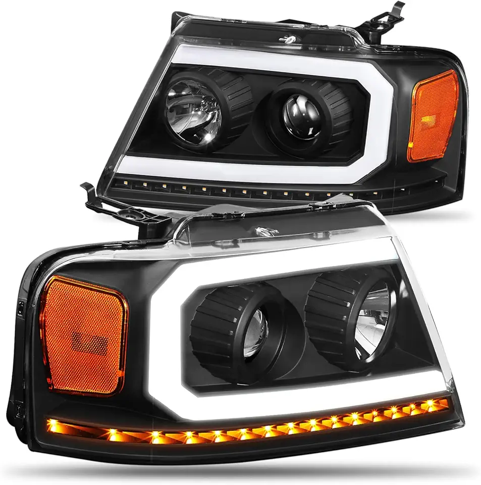 LED DRL Sequential Turn Signal Projector Headlights Compatible with 2004-2008 Ford F-150 Lincoln Mark LT CAAP-F15004-HPL-BKAM-HL