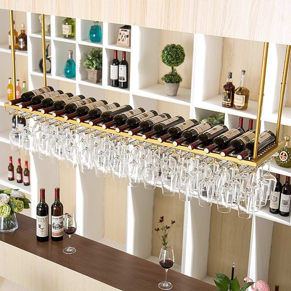 Wine Rack Wine Shelf Ceiling Mounted - Bottle & Glass Holder Floating Racks Modern Plants Photos Wine Bottles Display Storage Shelf for Kitchen Dining Room Home Bar