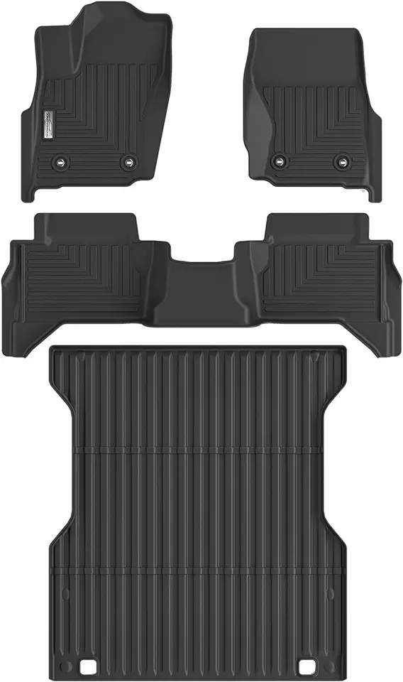 Floor Mats & Truck Bed Mat for 2024+Toyota Tacoma,1st 2nd Row and a 5ft Short Bed Bedmat,TPE All Weather Protection Slush Floor Liner Black