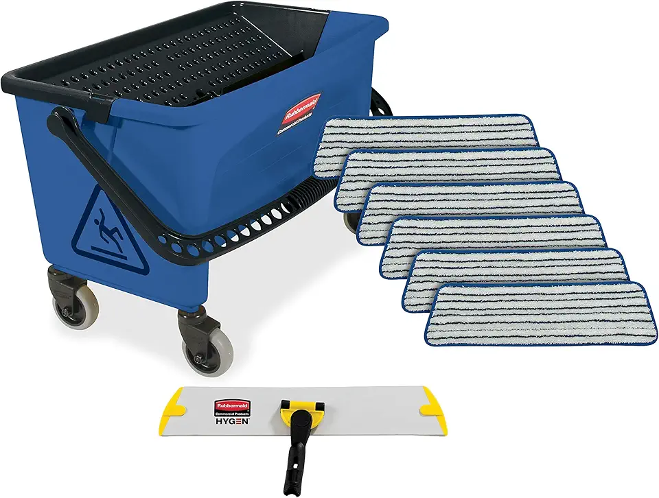 Rubbermaid Commercial Products Microfiber Finishing Floor Kit with Bucket and Finish Pads, 18-Inch, Mop for Floor Cleaning and Finish Applications,Blue