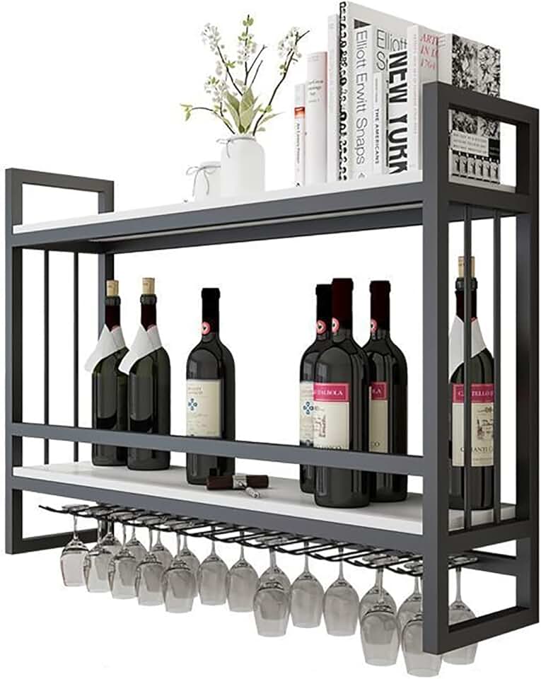 Wine Rack Wine Shelf Ceiling Industrial Wall-Mounted Metal Wine Storage Shelf Multi-Function Display Rack for Home Bar Restaurant Kitchen