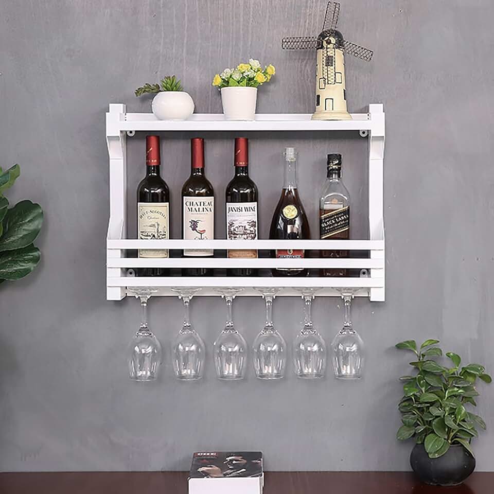 Wine Rack Wine Shelf Ceiling Industrial Wall Mounted s Rustic Metal Wine Holder Wall Mount Stemware Holder Wood Shelves Wall Shelf for Bar Restaurants Kitchen Storage Rack