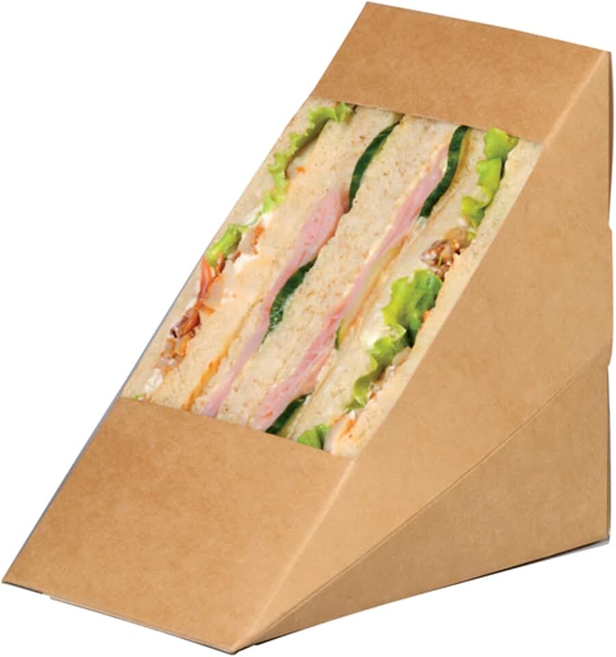 PacknWood - 209KCK7212 - Triangle-Shaped Boxes - Kraft Triple Sandwich Box with Window - Recyclable Paper Lunch Container Boxes - Kraft Sandwich Wedge Box - (4.8" x 3.2" x 4.8") - (Case of 500)