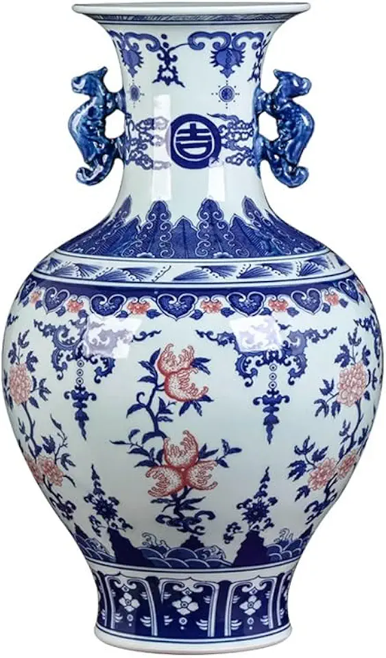 DFHBFG Glazed Red Vase Flower Arrangement Large Chinese Living Room Home Decoration Vase, 49*29*18*15CM