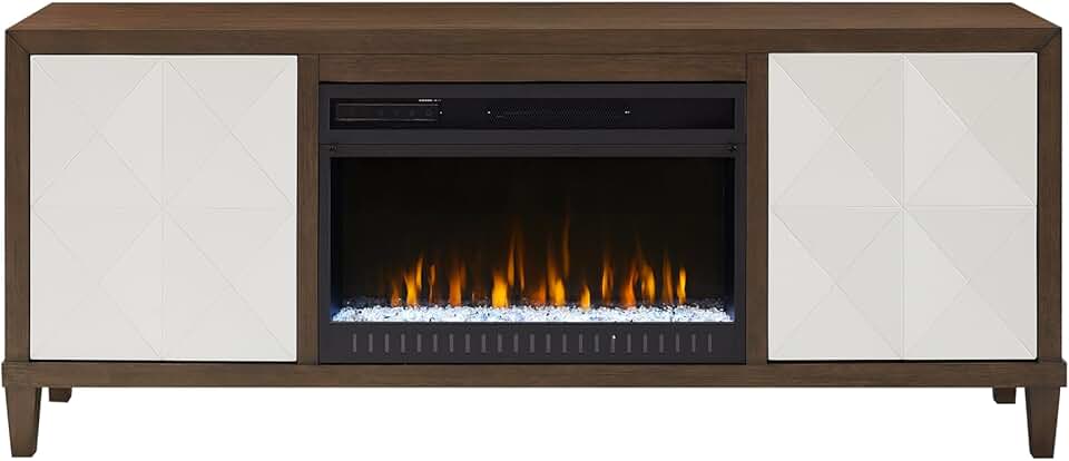 Modern Wood 65" Fireplace Console with with Doors, TV Stand, Entertainment Storage, Fully Assembled, Brown