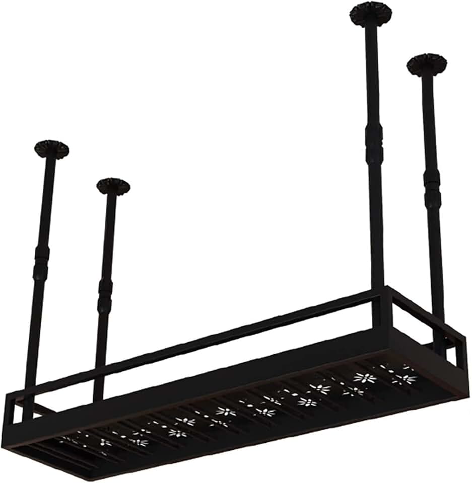 Hanging Wine Glass Holder Ceiling Shelf Adjustable Ceiling Bar Wine Glass Rack,Wine Bottle Holder,Industrial Hanging Wine Rack for Display,Storage & Decor,for Kitchen/Living Room/B