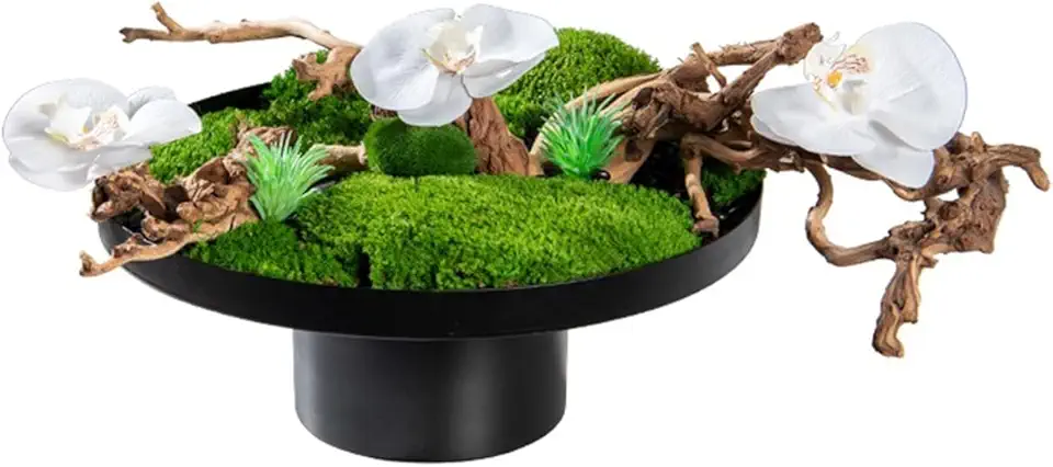 Artifical Tree Coffee Table Flower Stand Tea Room Ancient Rack Ornaments Simulated Moss and Green Plants Bonsai Zen Decorations Artificial Tree Indoor(A)
