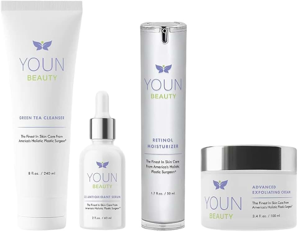 YOUN Beauty 2 Minutes 5 Years Younger Skin Care System by Dr. Anthony Youn – Anti-Aging Skincare Set: Vitamin C Serum, 2.5% Retinol Moisturizer, Green Tea Facial Cleanser & Wash-Off Exfoliating Cream
