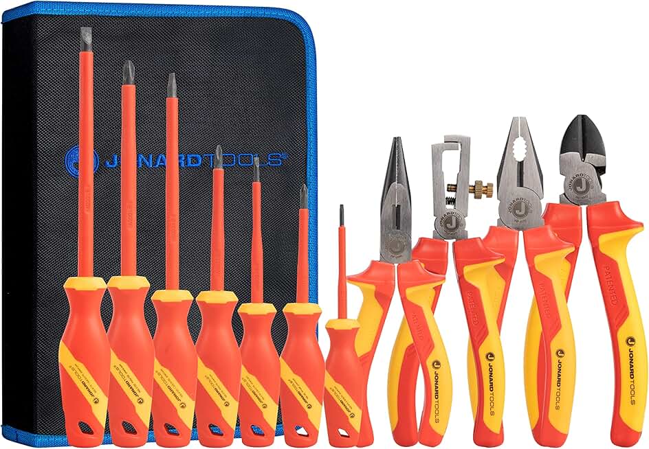 Jonard Tools TK-110INS 11 Piece Insulated Tool Kit with Insulated Phillips and Slotted Screwdrivers, Insulated Pliers, and Wire Stripper, Red