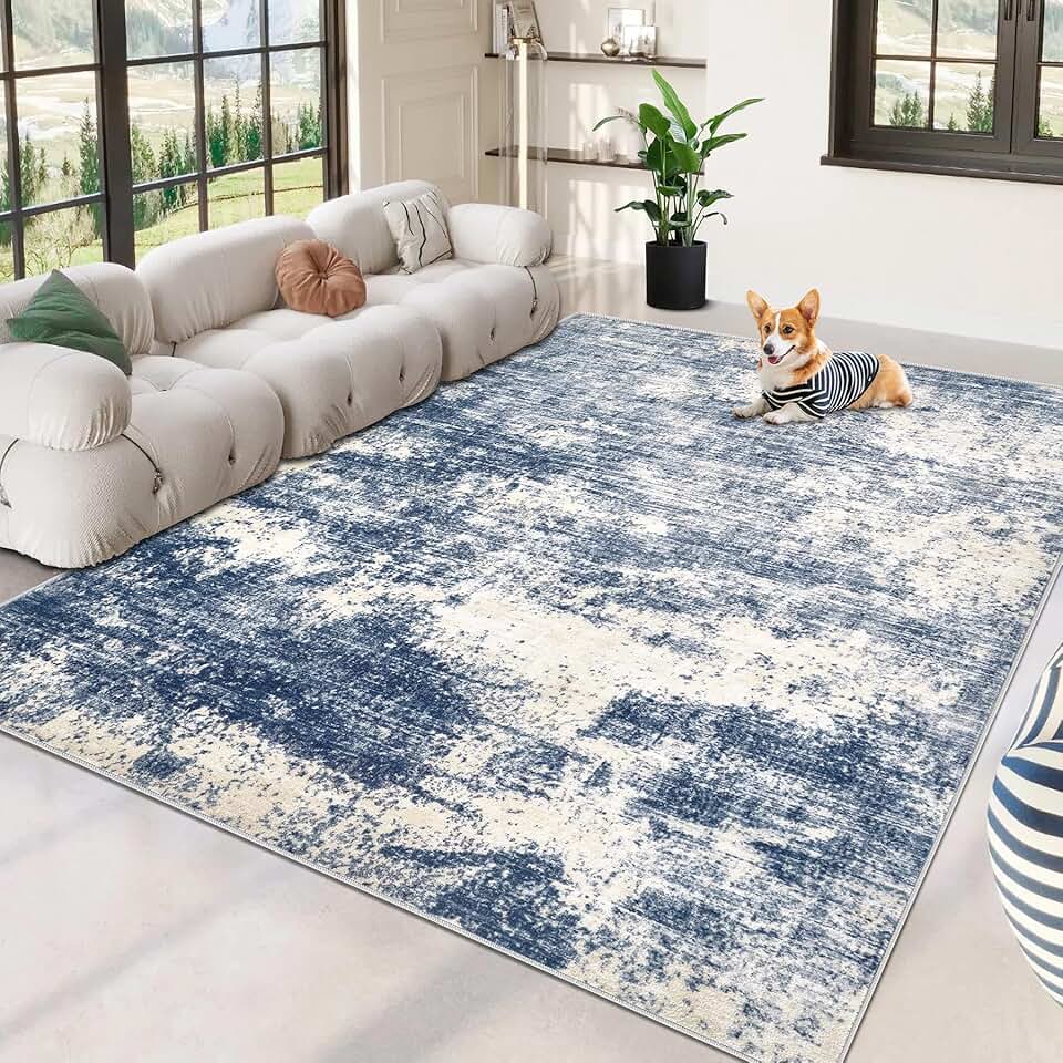 Area Rug Washable Rug 9x12: Large Modern Abstract Living Room Rug Anti-Slip Backing Stain Resistant Soft Indoor Carpet for Bedroom Kitchen Dining Room Table Home Office(Blue,9'x12')