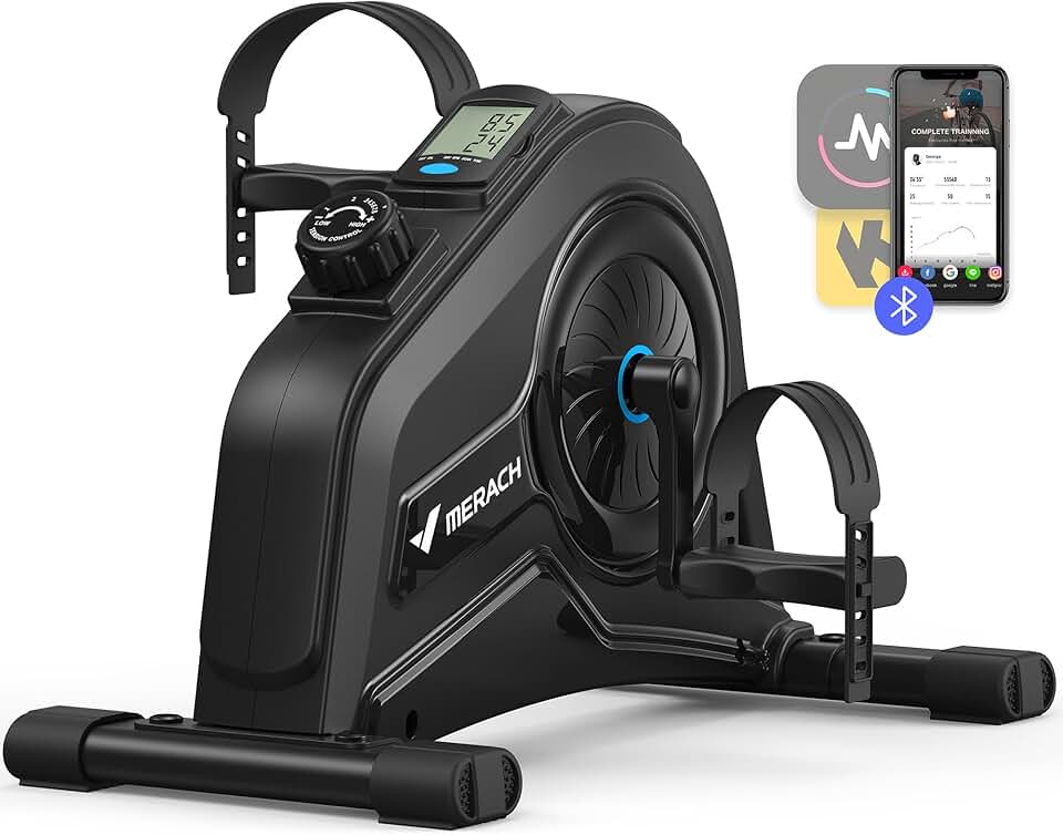 MERACH Under Desk Bike Pedal Exerciser, Silent Magnetic Mini Exercise Bike for Seniors Arm Leg Recovery, Physical Therapy, Non-Slip Desk Cycle with APP for Home Office Workout