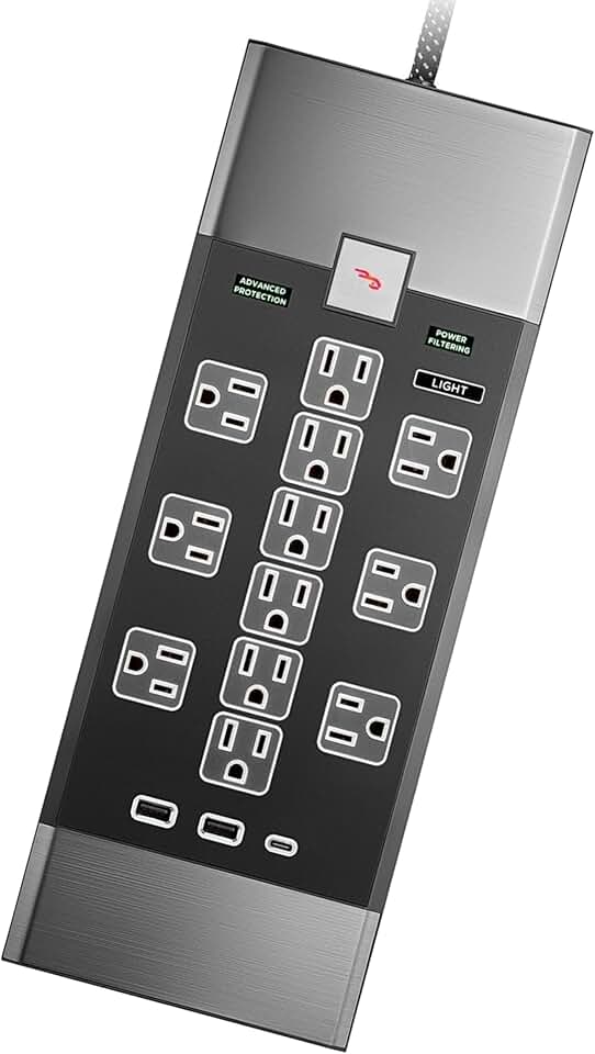Rocketfish - 12-Outlet 5,280 Joules Surge Protector with USB and USB-C - Apartment & House Essential - Wall Mountable Surge Protector Outlet - Power Strip with Standard & Wide-Spaced Outlets