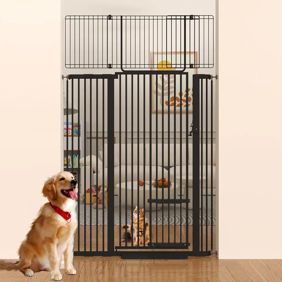 71 inch Extra Tall Cat Pet Gate for Doorway with cat Door Adjustable 29.5" and 46" Wide Pressure Mounted Safety Pet Gates for Stairs, Doorway, liveing Room Bedroom